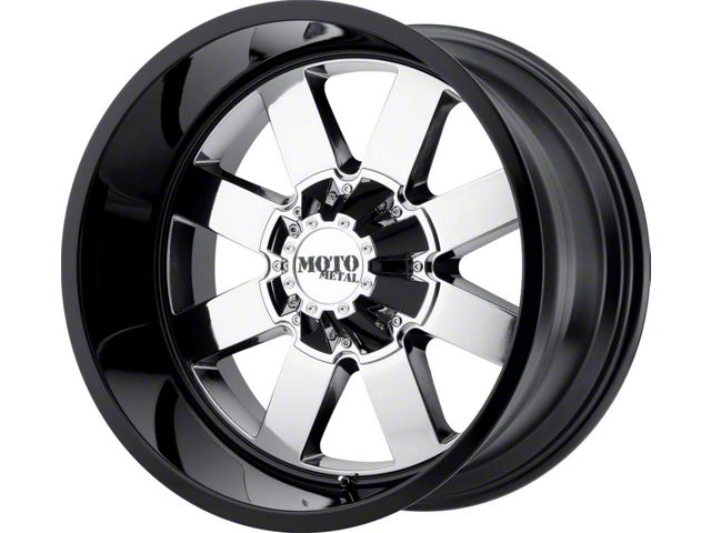 Moto Metal MO962 Chrome Center with Gloss Black Lip 6-Lug Wheel; 20x12; -44mm Offset. The Moto Metal MO962 Chrome Center with Gloss Black Lip 6-Lug Wheel offers a striking balance of style and refinement. Its unique design accentuates the vehicle's aesthetic, while the premium construction underscores its robust nature. This wheel is a perfect choice for those seeking both elegance and a strong visual statement.