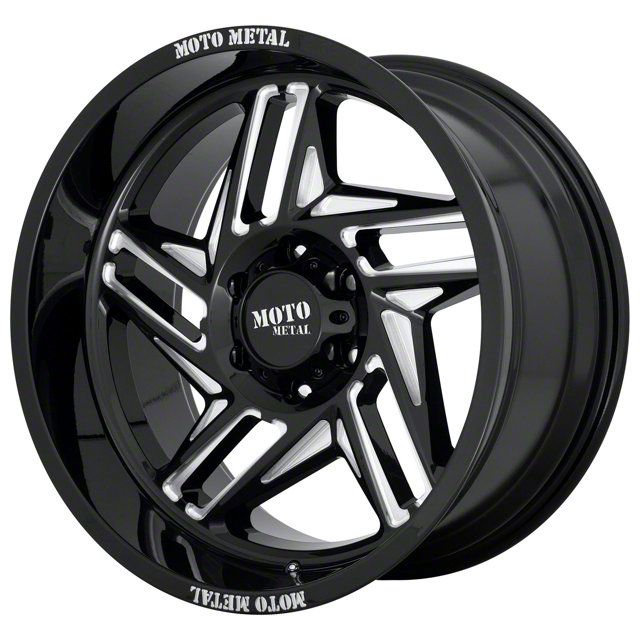 The 20x12 Moto Metal MO996 Ripsaw Gloss Black Milled 6-Lug Wheel is given a gloss black finish to keep your wheel looking sharp, but the steel milled accents are where it really shines through, literally. It makes the split section of the spokes pop and adds accents along the faux beadlock.