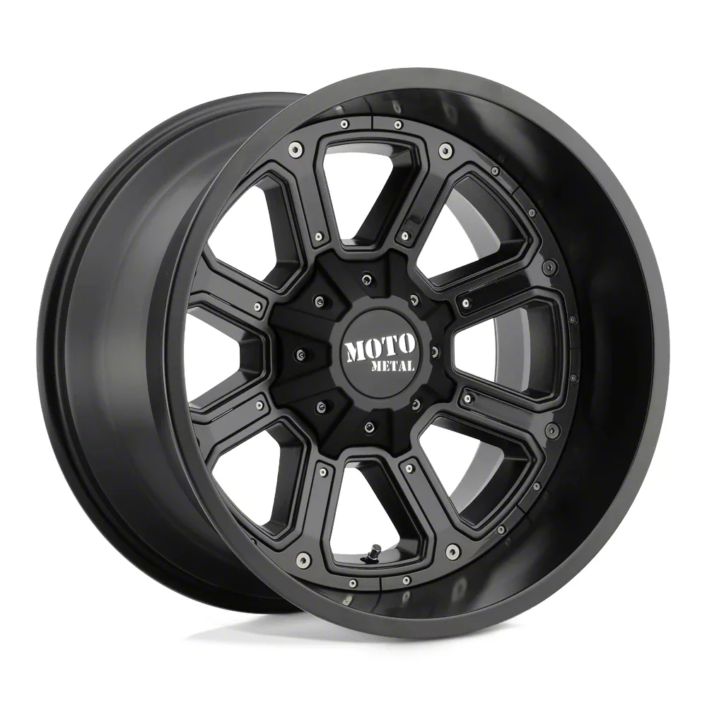 The 20x9 Moto Metal Shift Matte Black with Gloss Black Inserts 6-Lug Wheel is completed in a high-quality matte black finish with gloss black inserts for an aggressive appearance that will turn heads. This wheel features a durable clear coat that stands up to the hazards of everyday driving.