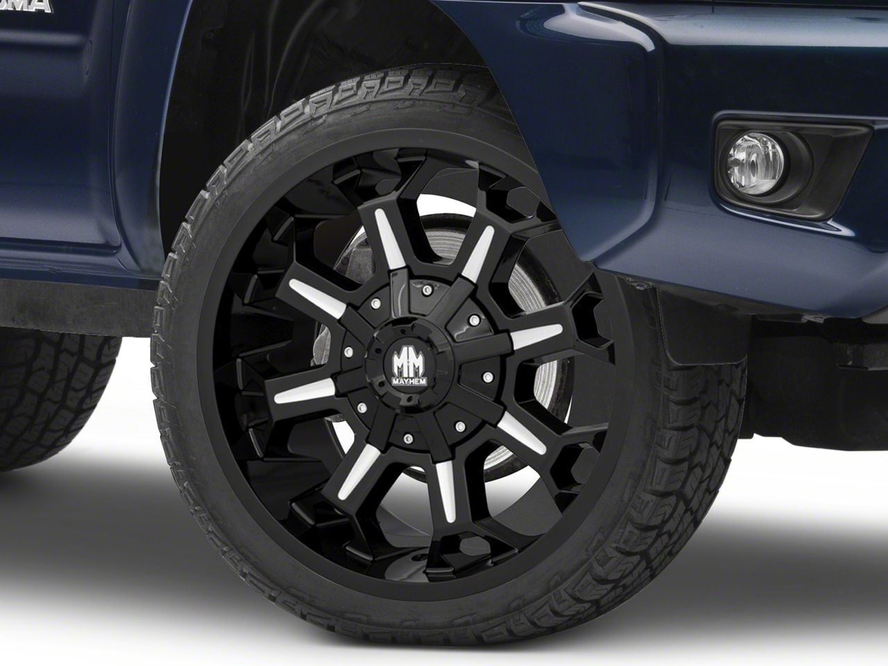 Application. This Moto Metal Combat Gloss Black Milled 6-Lug Wheel; 22x12; -44mm Offset, with a backspace of 4.768 Inch, 121.1mm and bolt pattern of 6 x 139.7mm (6 x 5.5-Inch), is designed to enhance alignment and driving stability, ensuring a perfect fit with the vehicle model. Specifically designed to fit 2005-2015 Tacoma models, this wheel's specifications contribute to a seamless alignment and stable driving experience by ensuring the wheel fits perfectly within the vehicle's wheel well, reducing the risk of rubbing issues and optimizing handling characteristics. Sold individually.