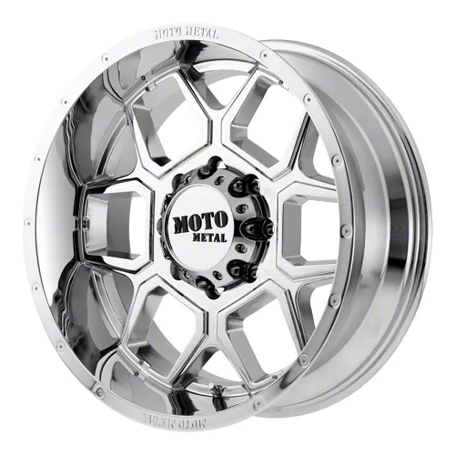 The 20x12 Moto Metal MO981 Spade Chrome 6-Lug Wheel is completed in a high-quality chrome finish that is accomplished in a 3-step plating process. Copper, nickel and chrome come together for a durable, dynamic look.