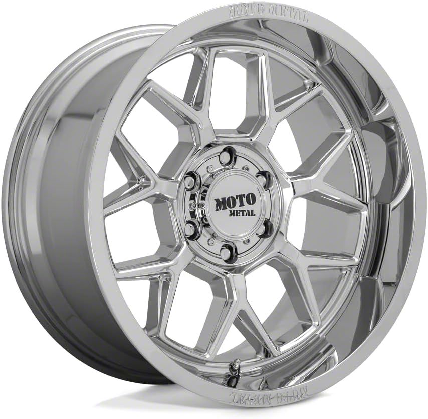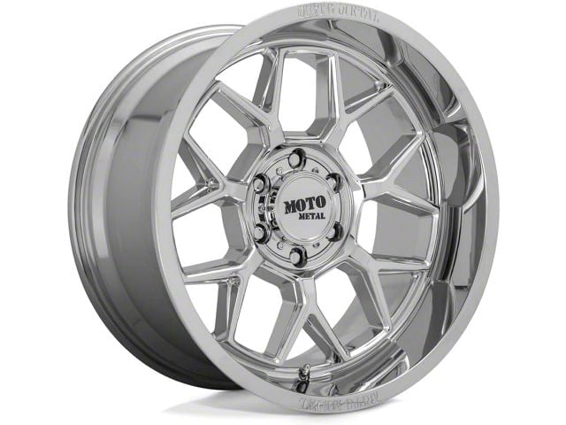 Moto Metal MO803 Banshee Chrome 6-Lug Wheel; 20x10; -18mm Offset - This wheel's elegant design will certainly enhance your vehicle's aesthetic, complementing its luxury and performance. The unique styling of this wheel makes it an ideal choice for a standout quality of your ride, reflecting the premium quality associated with the Moto Metal brand.