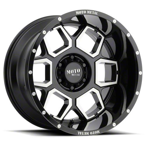The 20x12 Moto Metal MO981 Spade Gloss Black Machined 6-Lug Wheel is completed in a high quality, gloss black finish with machined accents for an impressive contrast in appearance that everyone will envy.
