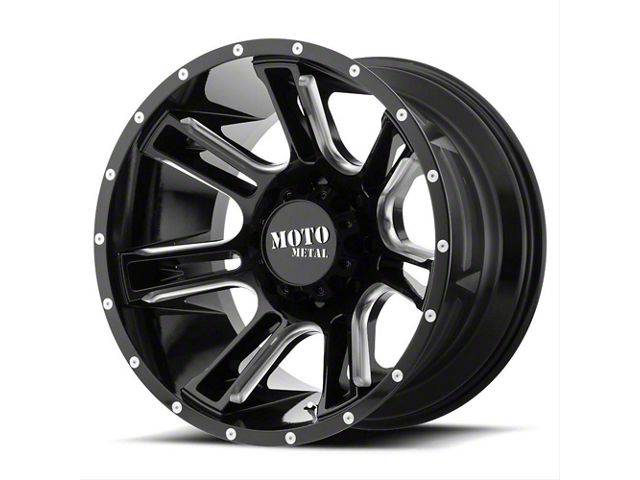 Moto Metal MO982 Amp Gloss Black Milled 6-Lug Wheel; 20x12; -44mm Offset - Experience the sleek elegance of the Moto Metal wheel. Its matte black finish adds a touch of sophistication to your vehicle, enhancing its overall appearance without compromising on durability. Perfect for a variety of vehicle styles, this wheel is a testament to the brand's commitment to quality and aesthetic excellence.