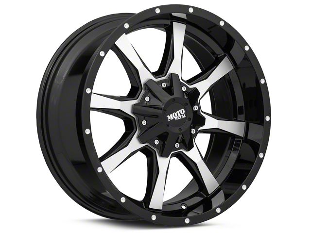 Moto Metal MO970 Gloss Black Machined 5-Lug Wheel; 20x10; -24mm Offset: Immerse your vehicle in style and elegance with this wheel's captivating matte black finish. The unique 10-hole design of this Mammoth wheel sets your vehicle apart, making a statement on the road. Whether cruising the city streets or heading out for a weekend escape, this wheel complements a wide range of vehicle styles.