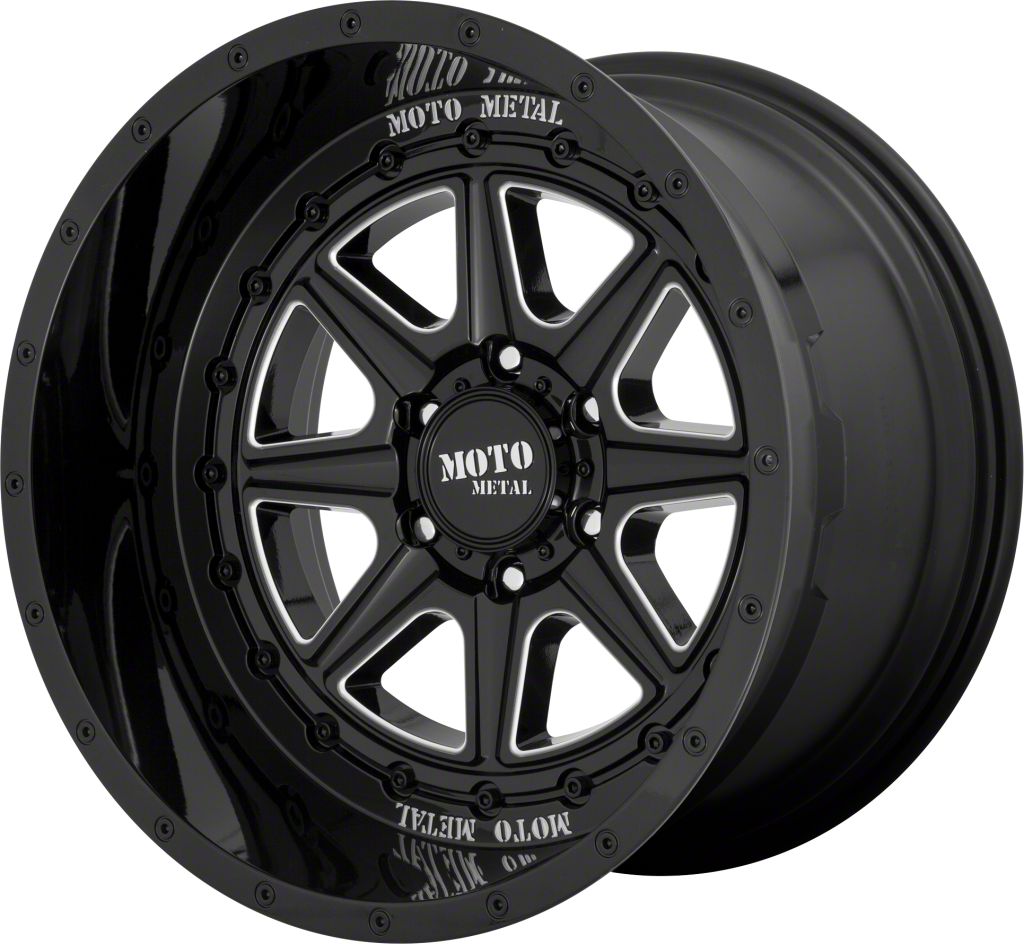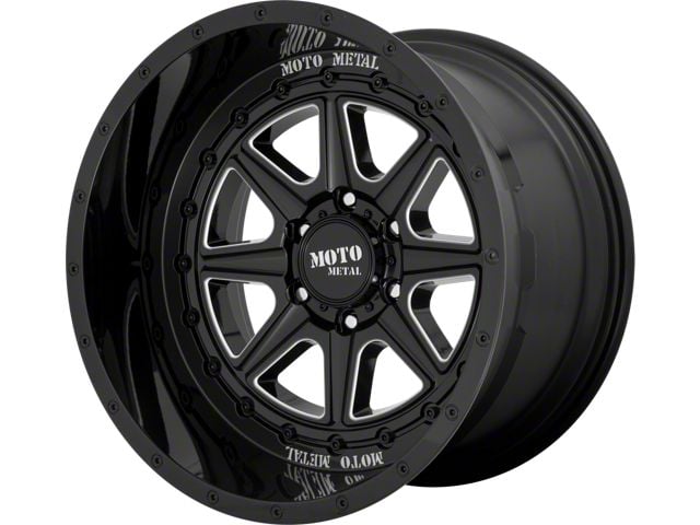 The 22x12 Moto Metal MO801 Phantom Gloss Black Milled 6-Lug Wheel is completed in a high-quality gloss black finish with mirror cut accents for a striking contrast in appearance that everyone will envy.