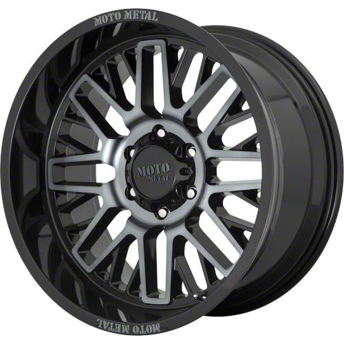 Moto Metal MO802 Gloss Black Machined with Gray Tint 6-Lug Wheel; 20x9; 0mm Offset delivers a bold and modern aesthetic, ideal for enthusiasts seeking a refined yet assertive look for their vehicle. With its standout design and distinct finish, this wheel enhances the vehicle's visual stance and street presence. The precise craftsmanship and premium aluminum build reflect Moto Metal's dedication to quality and distinctive design. Whether parked or in motion, this wheel draws attention with its clean, aggressive styling.