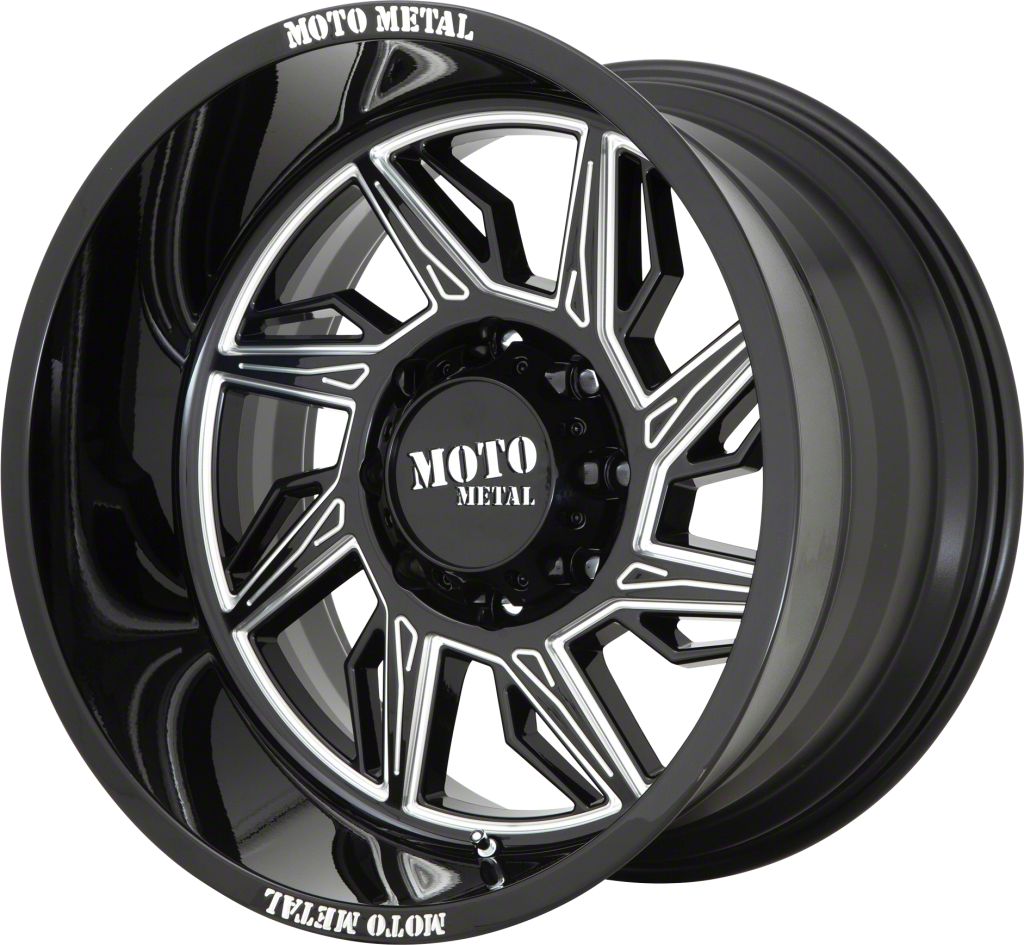 This 22x12 Moto Metal MO997 Hurricane Gloss Black Milled 6-Lug Wheel is completed in a high-quality gloss black finish with steel milled accents that will create a striking appearance. There's a durable clear coat that protects against driving hazards.