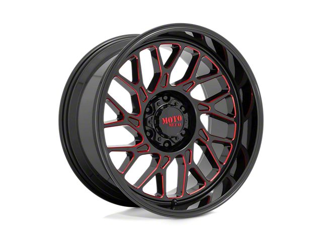 Moto Metal MO805 Gloss Black Milled with Red Tint 6-Lug Wheel; 20x10; -18mm Offset The Moto Metal MO805 Gloss Black Milled with Red Tint 6-Lug Wheel combines a sleek, sophisticated design with premium construction that enhances the visual appeal and complements a wide range of vehicle styles. This wheel is perfect for those seeking to make a bold statement while maintaining elegance and robustness.