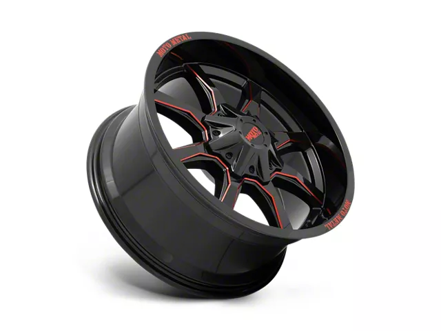 Moto Metal MO970 Gloss Black Milled with Red Tint and Moto Metal On Lip Wheel; 20x10 The Moto Metal MO970 Gloss Black Milled with Red Tint and Moto Metal On Lip Wheel combines a sleek, sophisticated design with premium construction that enhances the visual appeal and complements a wide range of vehicle styles. This wheel is perfect for those seeking to make a bold statement while maintaining elegance and robustness.