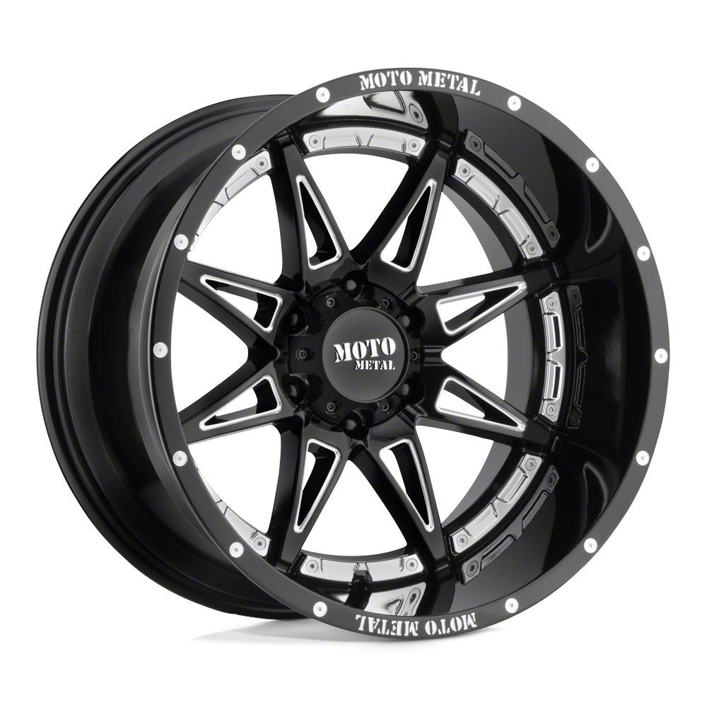 The 18x8.5 Moto Metal Hydra Gloss Black Milled Wheel is completed in a high-quality gloss black finish with steel milled accents that will be the envy of everyone. For added protection and good looks, there is a durable clear coat that withstands the rigors of everyday driving,