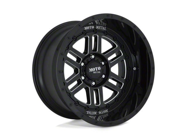 The 22x12 Moto Metal Deep Six Gloss Black Milled Wheel is completed in a high-quality gloss black finish with steel milled accents for an aggressive appearance that will turn heads. This wheel features a durable clear coat that stands up to the hazards of everyday driving.