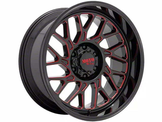 Moto Metal MO805 Gloss Black Milled with Red Tint Wheel; 20x10 exudes an unmistakable elegance that complements any vehicle. Crafted by Moto Metal, this wheel embodies a blend of style and sophistication. Its black, black chrome finish not only enhances its visual allure but also signifies its robust nature. Perfect for those who wish to make a statement on the road.