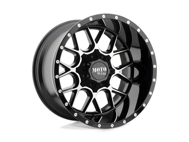 The 20x12 Moto Metal Siege Gloss Black Machined Wheel is completed in a high-quality gloss black finish with machined accents for an aggressive appearance that will turn heads. There is a durable clear coat that withstands the rigors of daily driving.