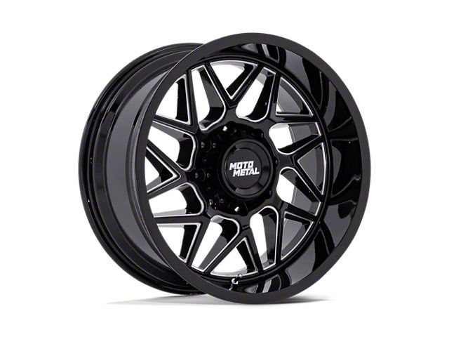 Moto Metal Turbine Gloss Black Milled Wheel; 20x10 The Moto Metal Turbine Gloss Black Milled Wheel combines a sleek, sophisticated design with premium construction that enhances the visual appeal and complements a wide range of vehicle styles. This wheel is perfect for those seeking to make a bold statement while maintaining elegance and robustness.