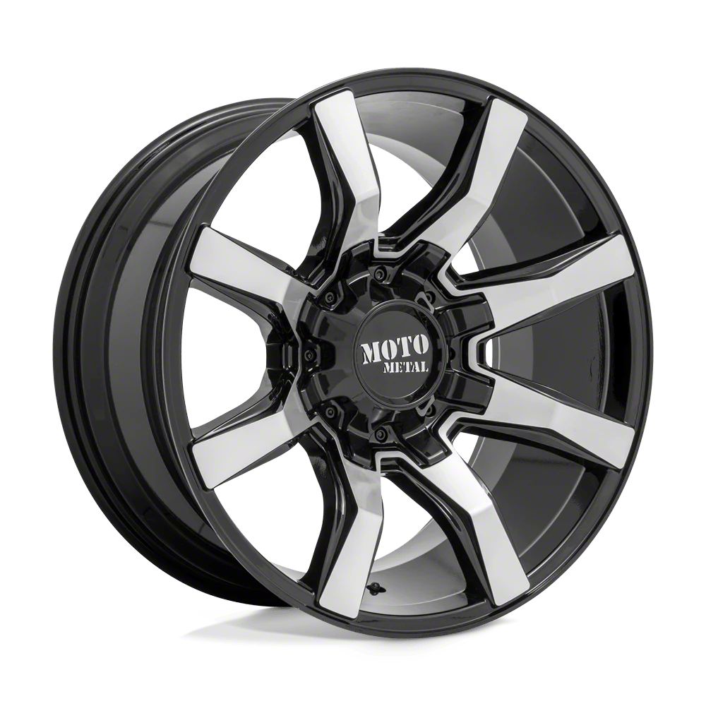 The 22x10 Moto Metal Spider Gloss Black Machined Wheel is completed in a high-quality gloss black finish with machined accents for an aggressive appearance that will turn heads. There is a durable clear coat that withstands the rigors of daily driving.