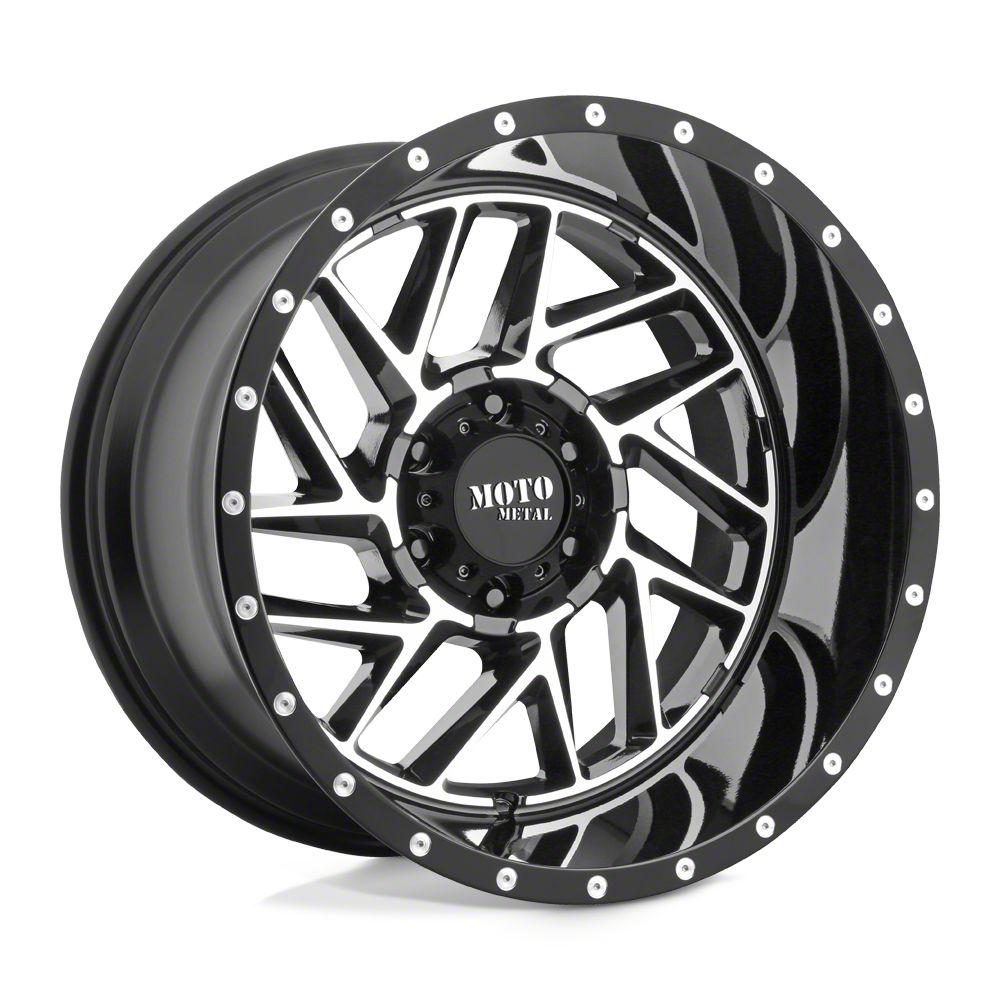 The 20x9 Moto Metal Breakout Gloss Black Machined Wheel is completed in a high-quality gloss black finish with steel machined accents that will be the envy of everyone. For added protection and good looks, there is a durable clear coat that withstands the rigors of everyday driving,