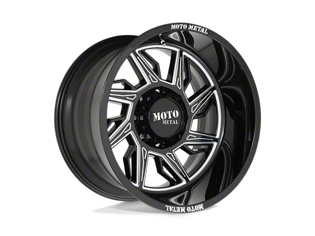 Moto Metal Hurricane Gloss Black Milled Wheel; Right Directional; 20x10 The Moto Metal Hurricane Gloss Black Milled Wheel combines a sleek, sophisticated design with premium construction that enhances the visual appeal and complements a wide range of vehicle styles. This wheel is perfect for those seeking to make a bold statement while maintaining elegance and robustness.