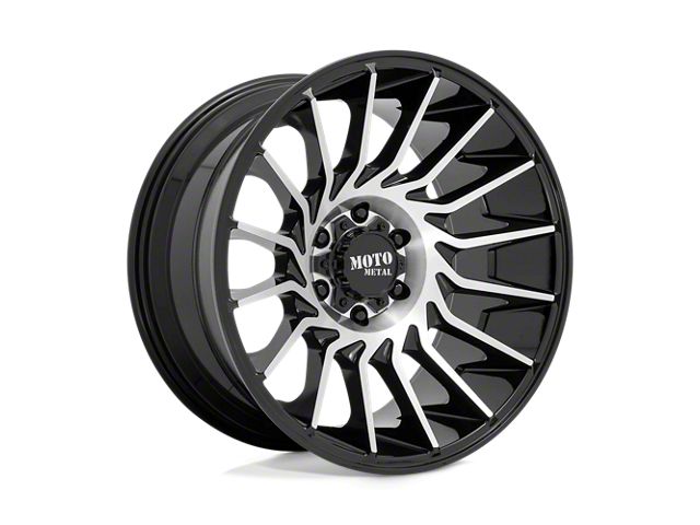 Moto Metal MO807 Gloss Black Machined Wheel; 22x12 The Moto Metal MO807 Gloss Black Machined Wheel combines a sleek, sophisticated design with premium construction that enhances the visual appeal and complements a wide range of vehicle styles. This wheel is perfect for those seeking to make a bold statement while maintaining elegance and robustness.