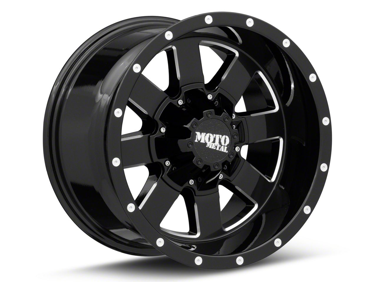 The 18x12 Moto Metal MO962 Gloss Black Milled Wheel is completed in a high-quality gloss black finish with steel milled accents for an aggressive appearance that will turn heads. This wheel features a durable clear coat that stands up to the hazards of everyday driving.
