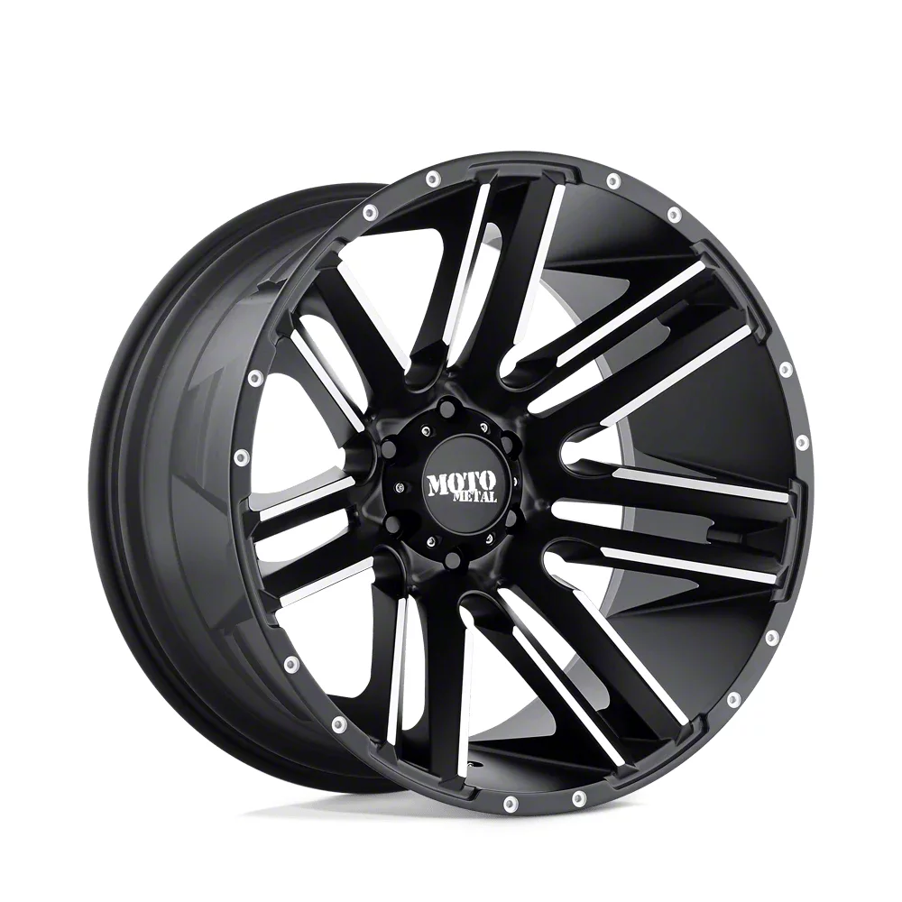 The 18x9 Moto Metal Razor Satin Black Machined Wheel is completed in a high-quality satin black finish with machined accents for an aggressive appearance that will turn heads. There is a durable clear coat that withstands the rigors of daily driving.