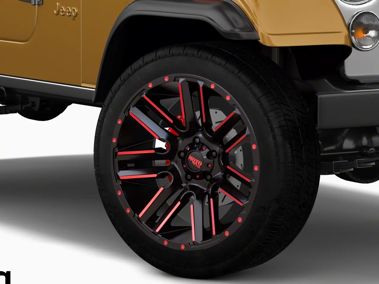 Moto Metal Razor Satin Black Machined with Red Tint Wheel; 20x10; -24mm Offset (76-86 Jeep CJ7)Find parts that fit my vehicle