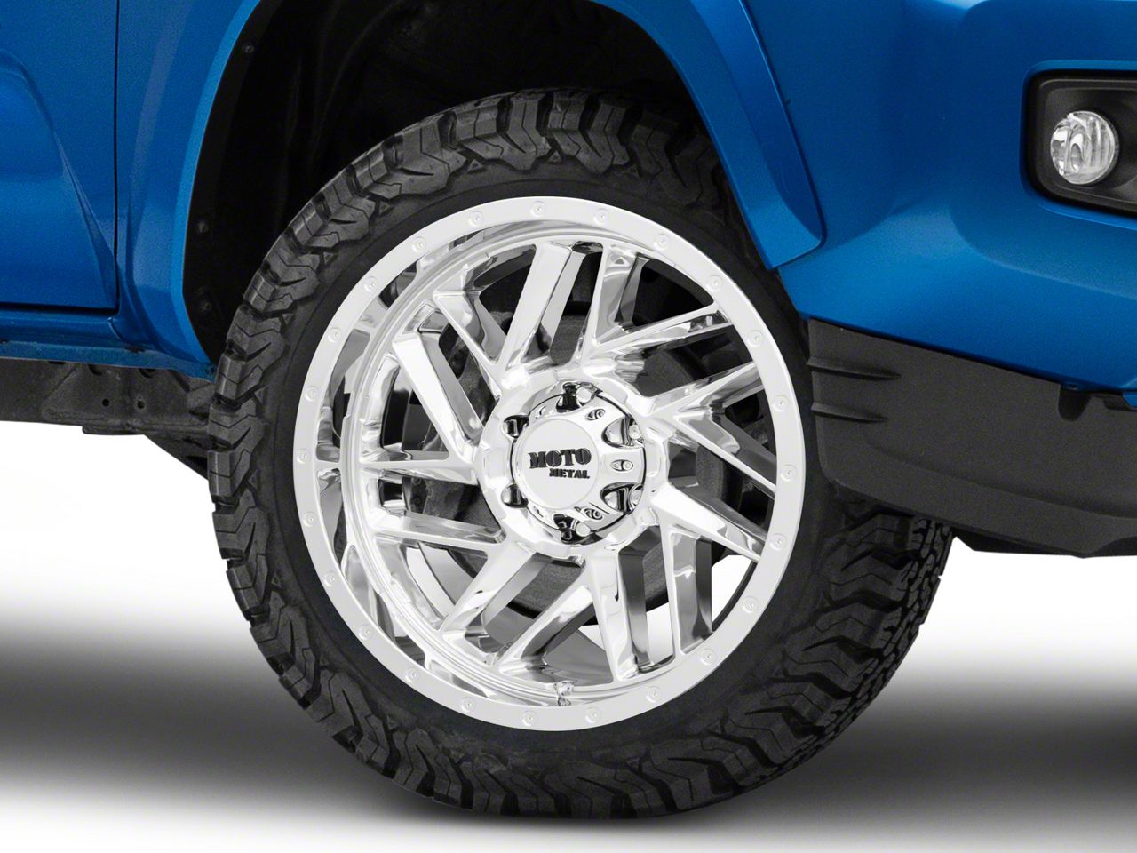 Application. This Moto Metal MO985 Breakout Chrome 6-Lug Wheel; 20x9; 18mm Offset with a backspace of 5.709 Inch, 145.1mm and bolt pattern of 6 x 139.7mm (6 x 5.5-Inch) ensures optimal alignment, unparalleled driving stability, and an impeccable fit with your vehicle. It is designed to fit the 2016-2023 Tacoma models. Sold individually.