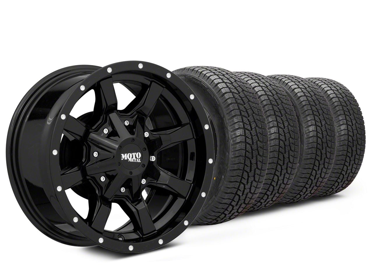 Mounted and Balanced Wheel and Tire Kit. This wheel and tire combo kit features (4) 16x8 Moto Metal MO970 Gloss Black 6-Lug Wheels and (4) West Lake SL369 All-Terrain 265/75R16 tires that have been put together into an easy to buy kit that arrives to your door already mounted and balanced ready to be installed on your vehicle.
