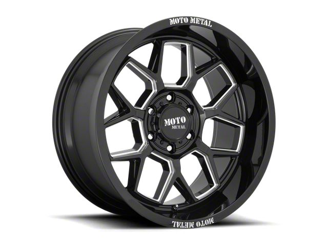 Moto Metal MO803 Banshee Gloss Black Milled 6-Lug Wheel; 20x10; -18mm Offset. The Moto Metal MO803 Banshee Gloss Black Milled 6-Lug Wheel offers a striking balance of style and refinement. Its unique design accentuates the vehicle's aesthetic, while the premium construction underscores its robust nature. This wheel is a perfect choice for those seeking both elegance and a strong visual statement.