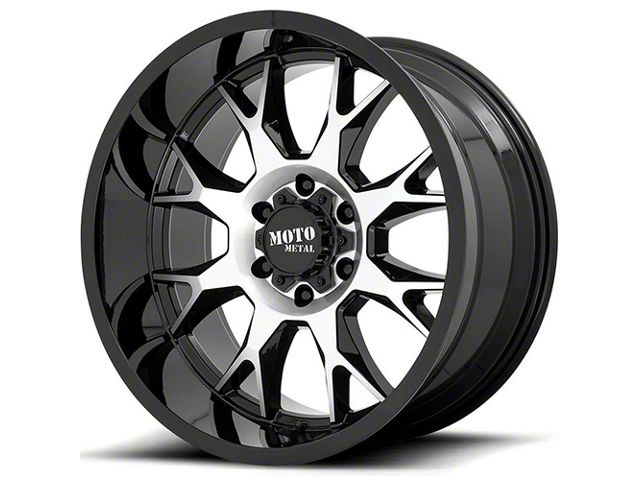 Moto Metal MO806 Gloss Black Machined 6-Lug Wheel; 22x12; -44mm Offset - This wheel's elegant design will certainly enhance your vehicle's aesthetic, complementing its luxury and performance. The unique styling of this wheel makes it an ideal choice for a standout quality of your ride, reflecting the premium quality associated with the Moto Metal brand.