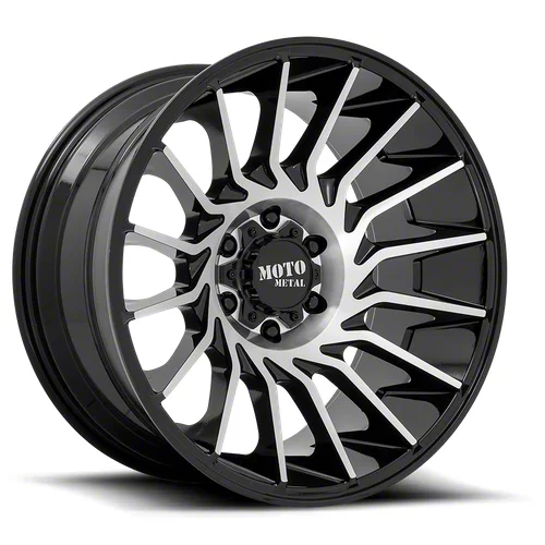 This 20x10 Moto Metal MO807 Gloss Black Machined 6-Lug Wheel is completed in a high-quality gloss black finish with machined accents that will be the envy of everyone. There's a durable clear coat that protects against driving hazards.