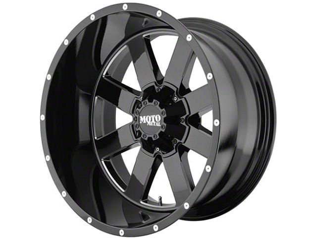 This 18x9 Moto Metal MO962 Gloss Black Milled 6-Lug Wheel is completed in a high-quality gloss black finish with steel milled accents that will create a striking appearance. There's a durable clear coat that protects against driving hazards.