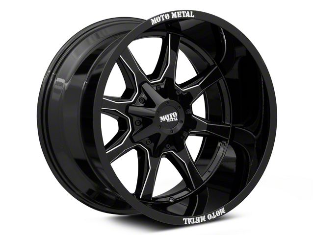 This 20x9 Moto Metal MO970 Gloss Black with Milled Spoke 6-Lug Wheel is completed in a high-quality gloss black finish with milled accents that will create a striking appearance. There's a durable clear coat that protects against the hazards of driving.