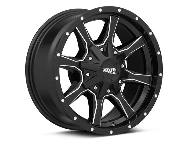 The 20x10 Moto Metal MO970 Satin Black Milled 6-Lug Wheel is given a satin black finish to keep your wheel looking sharp as its design. This wheel's milled steel accents are where it really shines through, and quite literally.