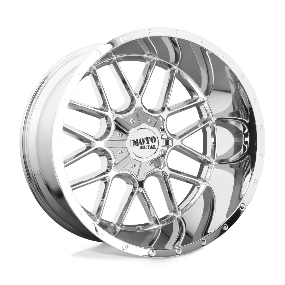 The 20x9 Moto Metal Siege Chrome 6-Lug Wheel is completed in a high-quality, triple-process chrome finish that will be the envy of everyone. For added protection and good looks, there is a durable clear coat that handles the rigors of daily driving.
