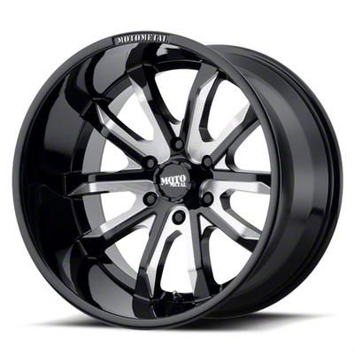 This 20x9 Moto Metal MO983 Dagger Gloss Black Milled 6-Lug Wheel is completed in a high-quality gloss black finish with steel milled accents that will create a striking appearance. There's a durable clear coat that protects against driving hazards.
