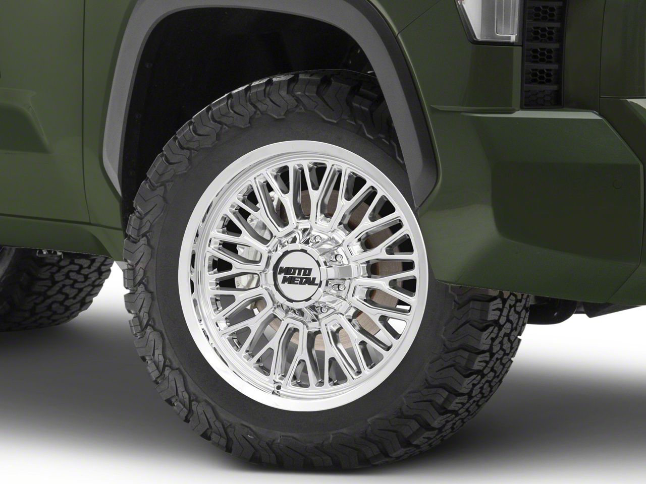 Application. This Moto Metal Stinger Chrome 6-Lug Wheel; 20x10; -18mm Offset, with a backspace of 4.792 Inch, 121.8mm; and bolt pattern of 6 x 139.7mm (6 x 5.5-Inch), ensures precise alignment and unwavering stability. Designed to fit the 2022-2026 Tundra models, it stands out as a tailored enhancement. Sold individually.