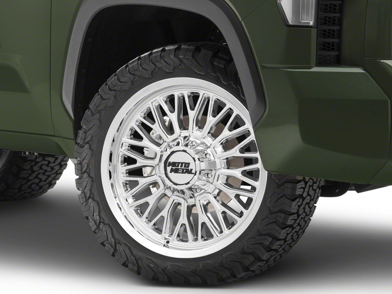 Application. This Moto Metal Stinger Chrome 6-Lug Wheel; 22x10; -18mm Offset, with a backspace of 4.791 Inch, 121.7mm and bolt pattern of 6 x 139.7mm (6 x 5.5-Inch), is designed to provide not only a striking visual appeal but also to contribute significantly to the alignment and driving stability of the vehicle. Its specifications ensure a precise fit with the vehicle model, enhancing the overall driving experience. Built to fit the 2022-2026 Tundra, this wheel is sold individually.