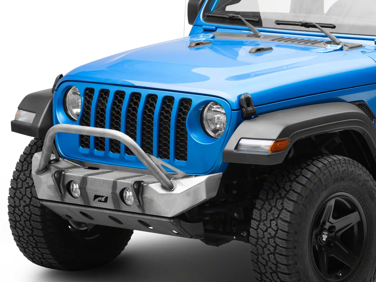 Application. A Motobilt Hammer Stubby Front Bumper with Bull Bar, Fog Light Mounts and Skid Plate is made to suit 2020-2025 Jeep Gladiator JTs.