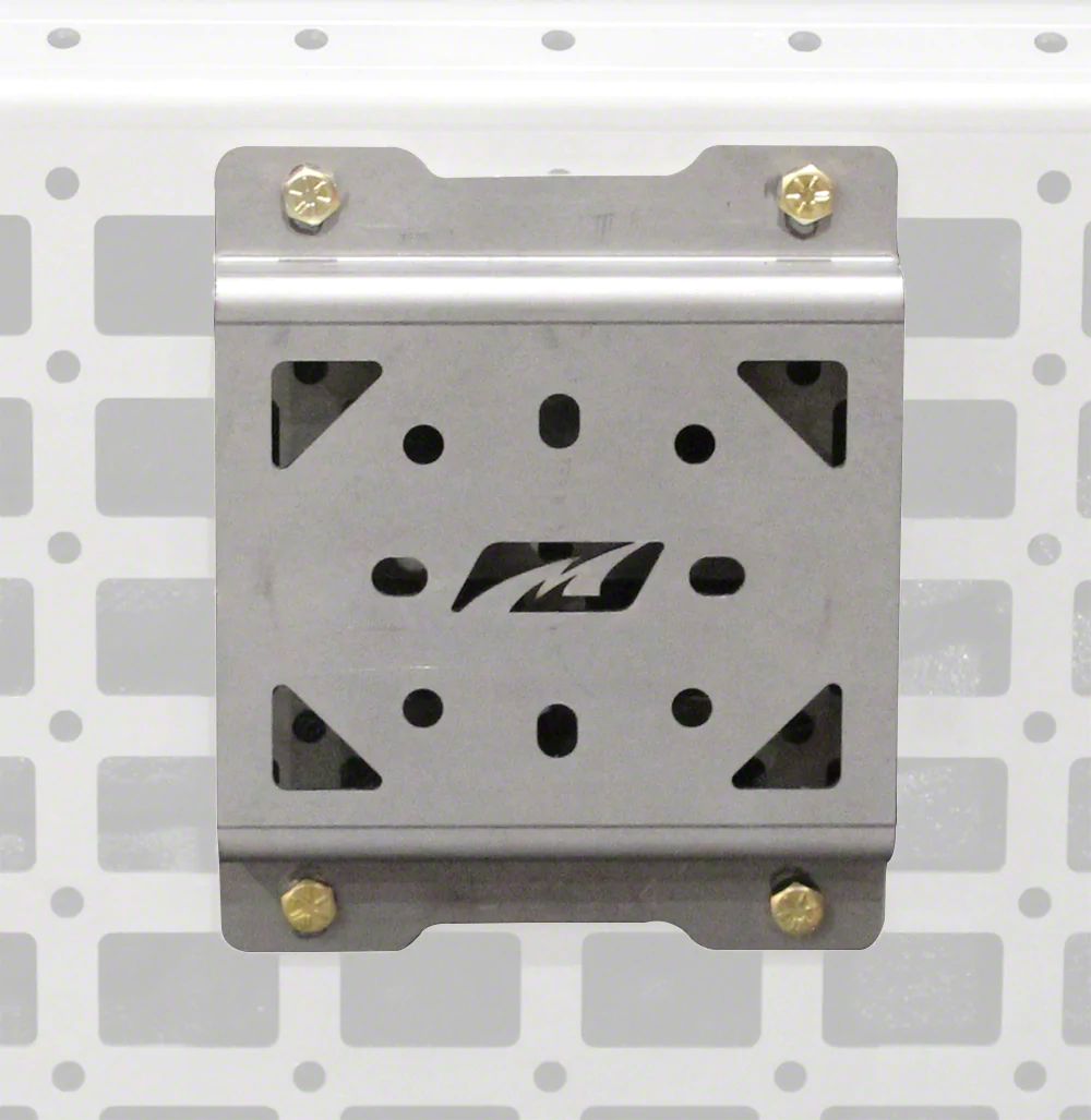 The bolt pattern on the inside face of our mount is designed to fit a Rotopax Standard DLX Pack Mount either with or without their light gauge round mounting plate. Our bolt pattern allows the Rotopax mount to be mounted either vertically or horizontally as well. The mounting surface features a 4” x 6” bolt mounting pattern which adapts a Rotopax DLX Pack Mount to fit on any MOLLE grid bolt pattern.
