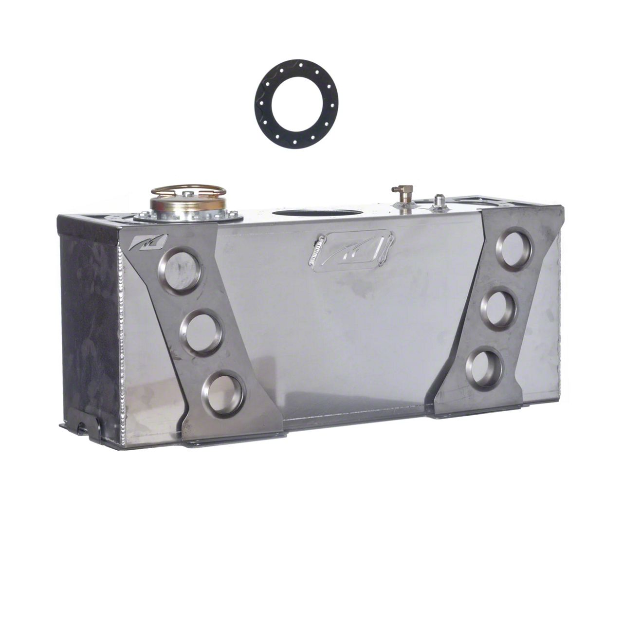 Sturdy Structure. The Motobilt 15-Gallon Fuel Cell Package serves as a top-tier fuel storage solution for those who are passionate with off-road terrains and motorsports. With dimensions measuring 30 x 12 x 9 inches, it possesses a capacious volume of fifteen gallons, providing ample fuel supply for even the most prolonged excursions. Also, this fuel cell is manufactured with top-quality 1/6-inch aluminum, ensuring it withstands the rigors of tough off-road terrains. Not to mention, the fuel cell's bare finish provides an understated and sleek appearance, while its TIG welding ensures its longevity.