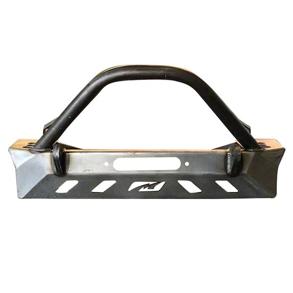 Description. The Motobilt Jeep YJ, TJ, or LJ front bumper with bull bar is the most versatile yet. This bumper like our others is made out of 3/16 inch thick steel plate that is laser cut and CNC formed in house. The bumper has a modern sleek design that sets it apart from the competitors. The bumper features not only a built in winch mount but also the fairlead mount. The new bumper fits up and over the factory sway bar. So you get the look of a recessed winch but you do not have to modify any of the existing Jeep components. This version has a metal bull bar made out of 1.75 inch DOM tubing that is welded directly to the bumper and has integrated laser cut support gussets.