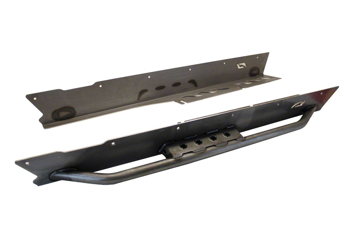 Motobilt Rocker Guards for Comp Cut Corners with Tube Step; Notched for Motorbilt Front Fenders; Bare Steel (04-06 Jeep Wrangler TJ Unlimited)Find parts that fit my vehicle