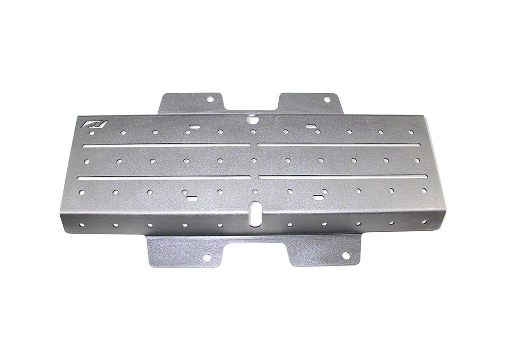 More Accessory Support. Elevate the look and utility of your ride with this Motobilt Tailgate Accessory Base Mount; Bare Steel on your Jeep Wrangler. Made of strong steel, it features a rigid structure that fits right over the location of your spare tire carrier. It features multiple mounting holes, precision machined to match most common bolt patterns of any automotive accessory or tool.