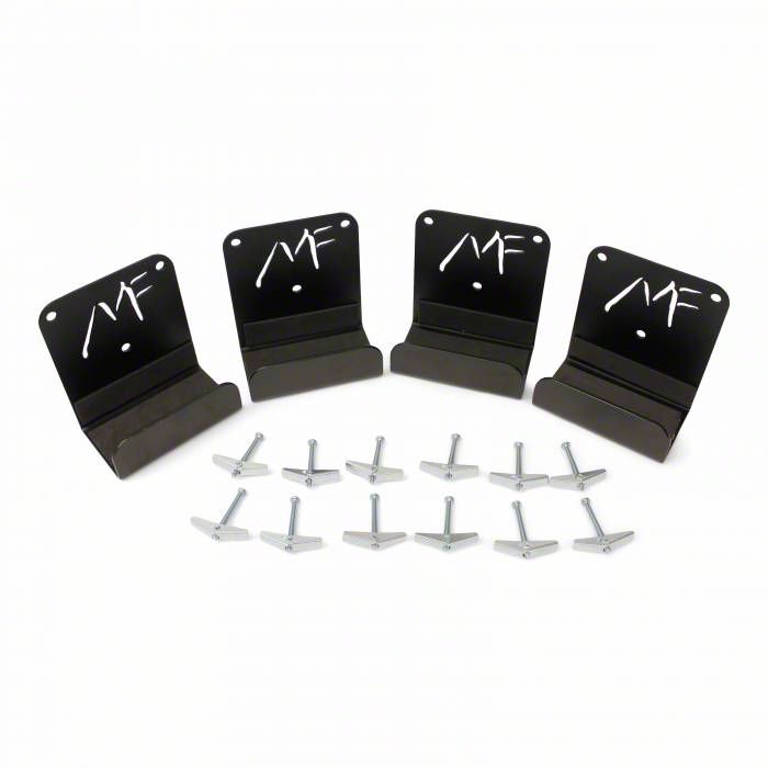 Durable Structure. The MotoFab Door Hangers are meticulously crafted with 1/8-inch thick steel, ensuring exceptional strength and durability. With their CNC-machined precision, they provide a perfect fit for your vehicle's doors, keeping them securely in place. Finished with a sleek black powder coating, these door hangers not only provide a stylish look but also offer enhanced resistance against rust and corrosion.