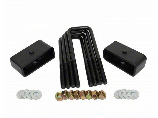 Built to Last. Crafted with precision, the kit features fabricated rear lift blocks that are built to last. The longer U-bolts offer secure and reliable installation, ensuring optimal stability. The black powder-coated finish not only adds a sleek appearance but also provides excellent durability, protecting against rust and corrosion.