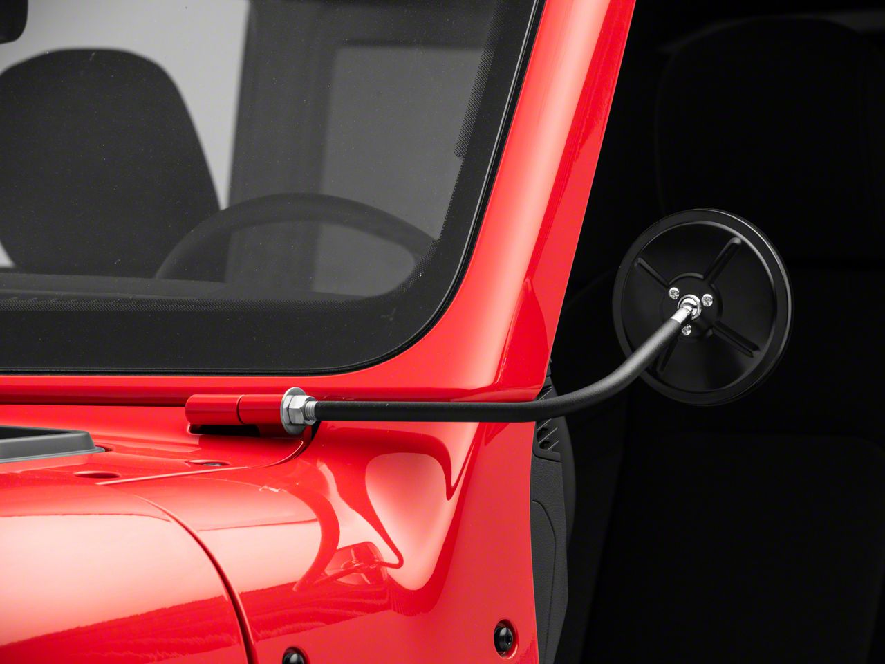 Stay Street Legal. If you're like most Jeep enthusiasts, you love taking the doors off your Wrangler in warm weather, but in doing so you lose your factory mirrors. Installing a pair of Round Trail Mirrors will keep you street legal, as these mirrors can be installed with your doors removed.