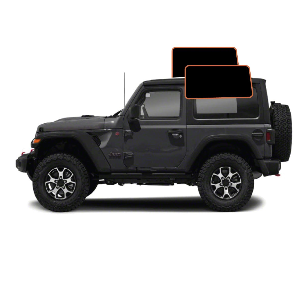 Application. This MotoShield Pro Cargo Driver/Passenger Window Tint; 25% is designed to fit 2018-2026 Jeep Wrangler JL 2-Door Hard Top models. Please check your local tint laws before ordering.