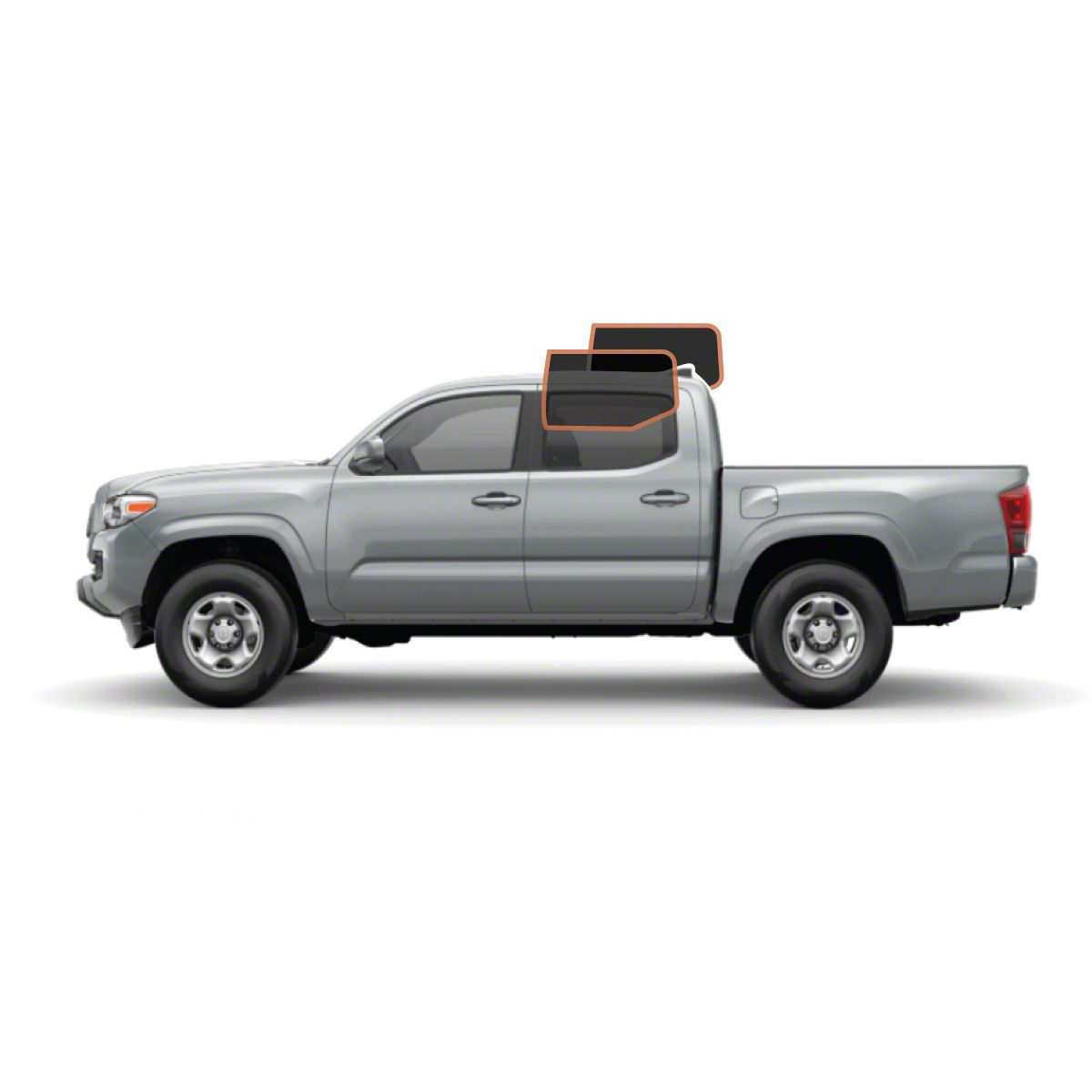 Application. This MotoShield Pro Rear Driver/Passenger Window Tint; 25% is designed to fit 2016-2023 Toyota Tacoma Double Cab models. Please check your local tint laws before ordering.