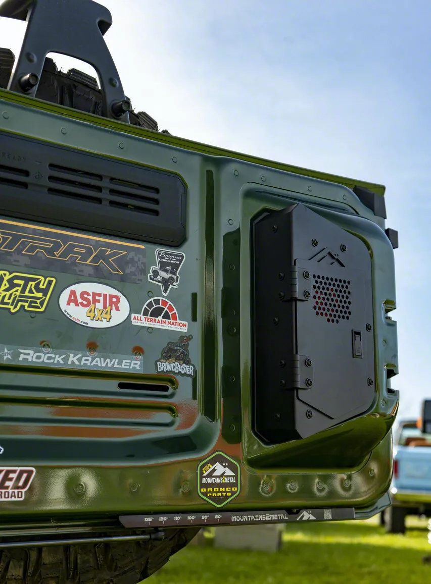 Application. The Mountains2Metal Tailgate Medicine Cabinet fits with 2021-2024 Bronco.